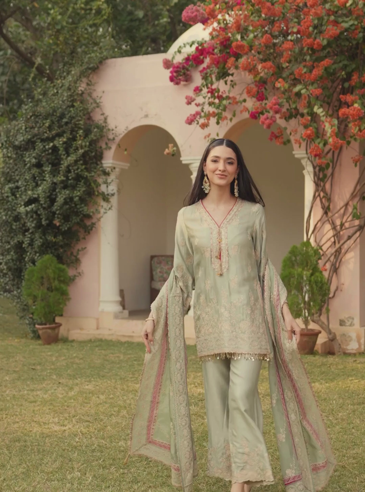 Saaj Cupro Satin Sage Green Kurta Set