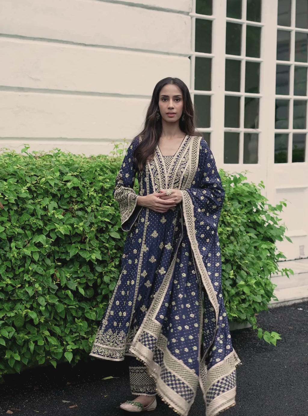 Rangeela Banarsi Navy Anarkali Kurta Set