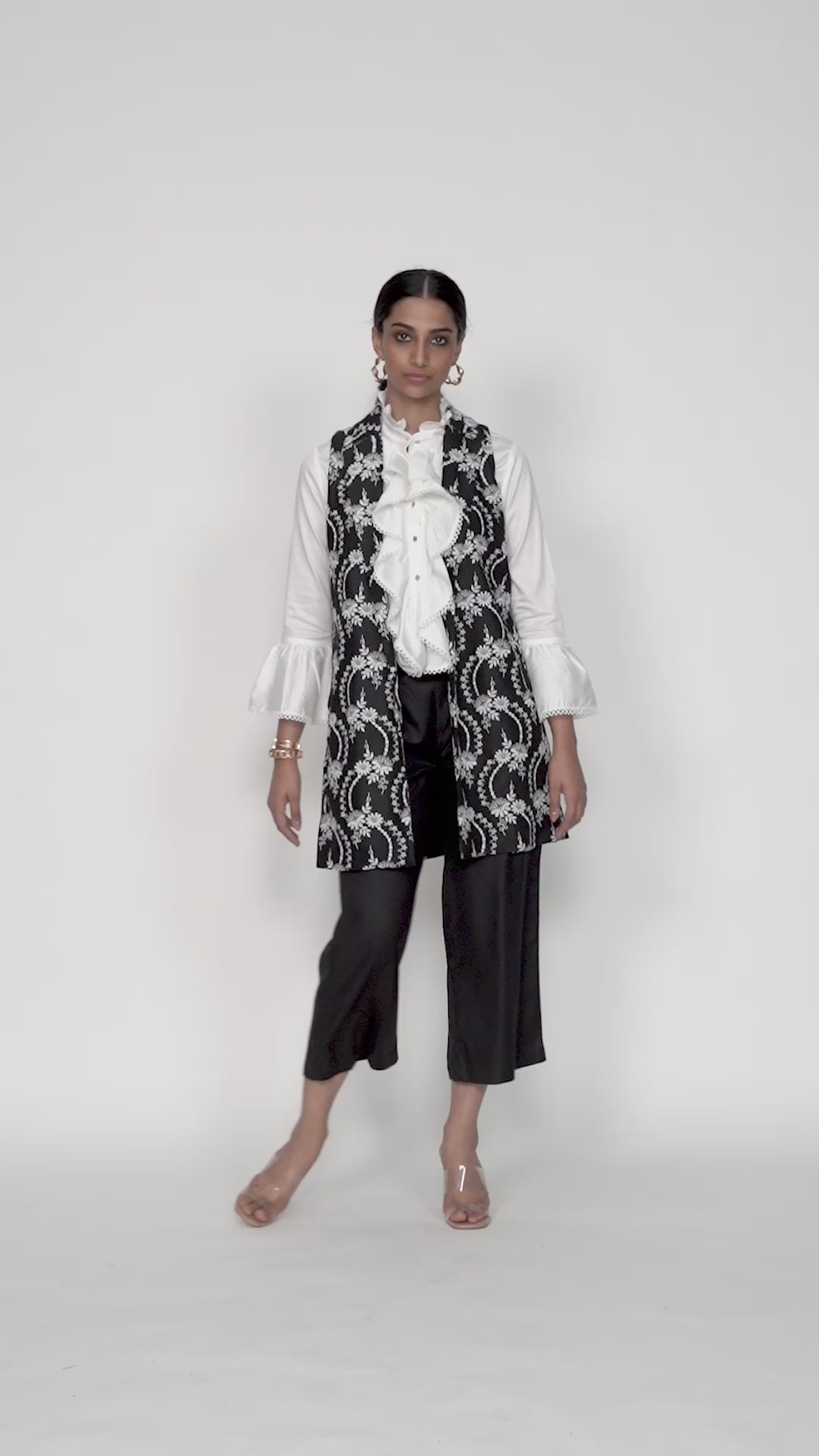 Mulmul Supima Cotton Applique Organza Panel White Pant
