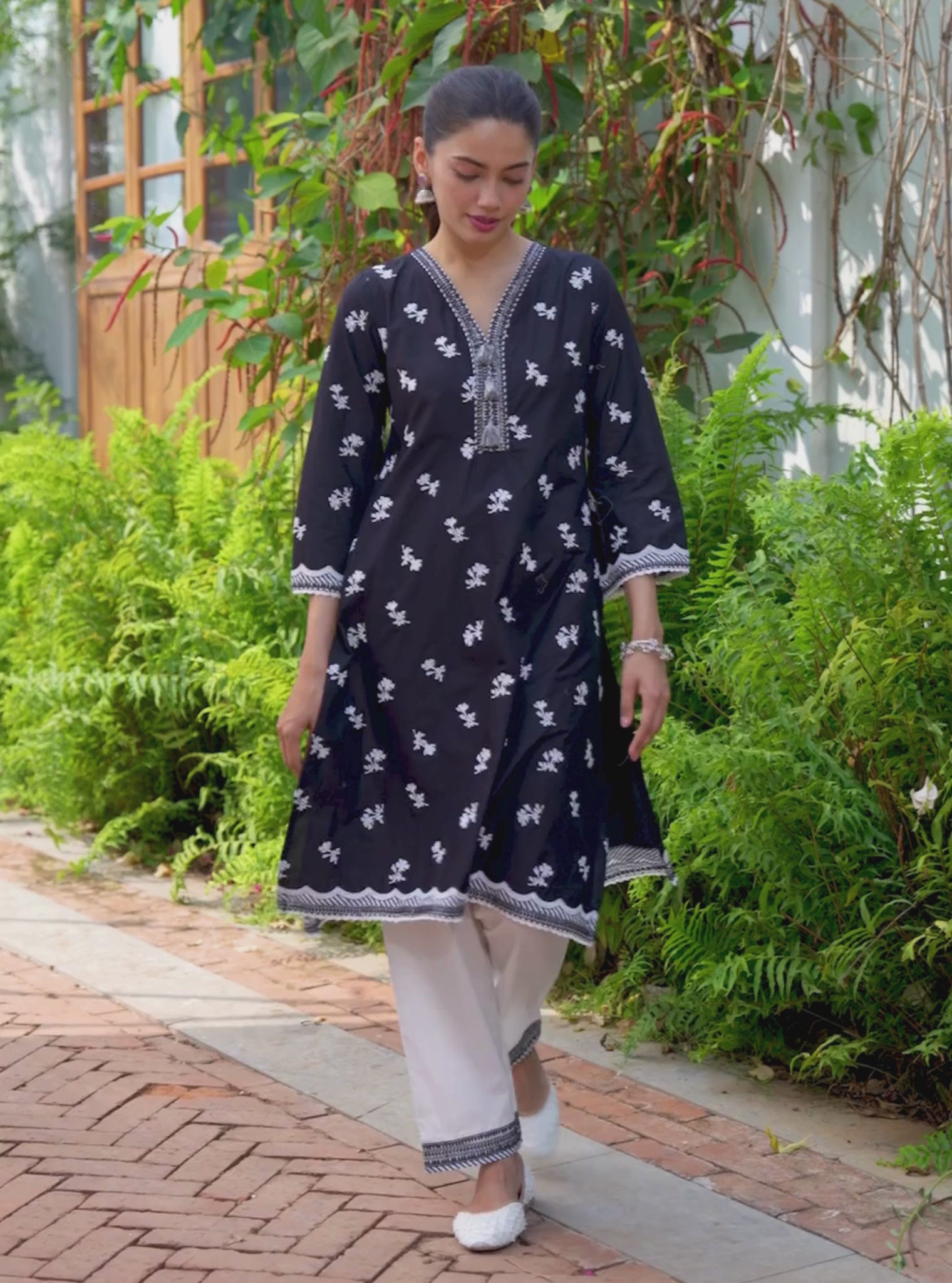Made in soft Supima cotton, the Airaani kurta set combines comfort with thoughtful design. The straight kurta features delicate all-over prints that lend the piece a fresh, understated charm. Paired with cotton pants for an easy silhouette, the set is finished with a matching cotton dupatta that ties the look together beautifully. Lightweight and breathable, it is ideal for daytime occasions, casual gatherings and warm-weather celebrations.