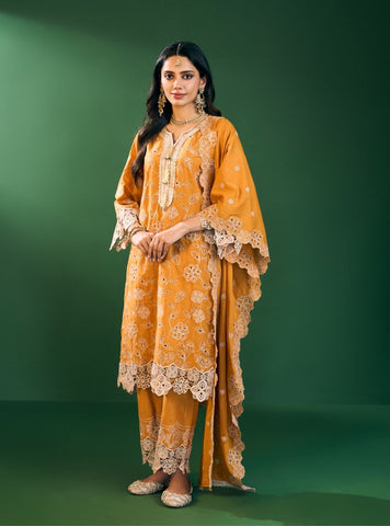 Bright, bold, and brimming with festive detail. This straight-cut Supima Cotton kurta in fuschia makes an instant statement. Intricate embroidery and lace accents trace the neckline and sleeves, while scalloped edges at the hem and dupatta bring a soft femininity. Finished with straight cotton pants, this set is a celebration piece through and through.