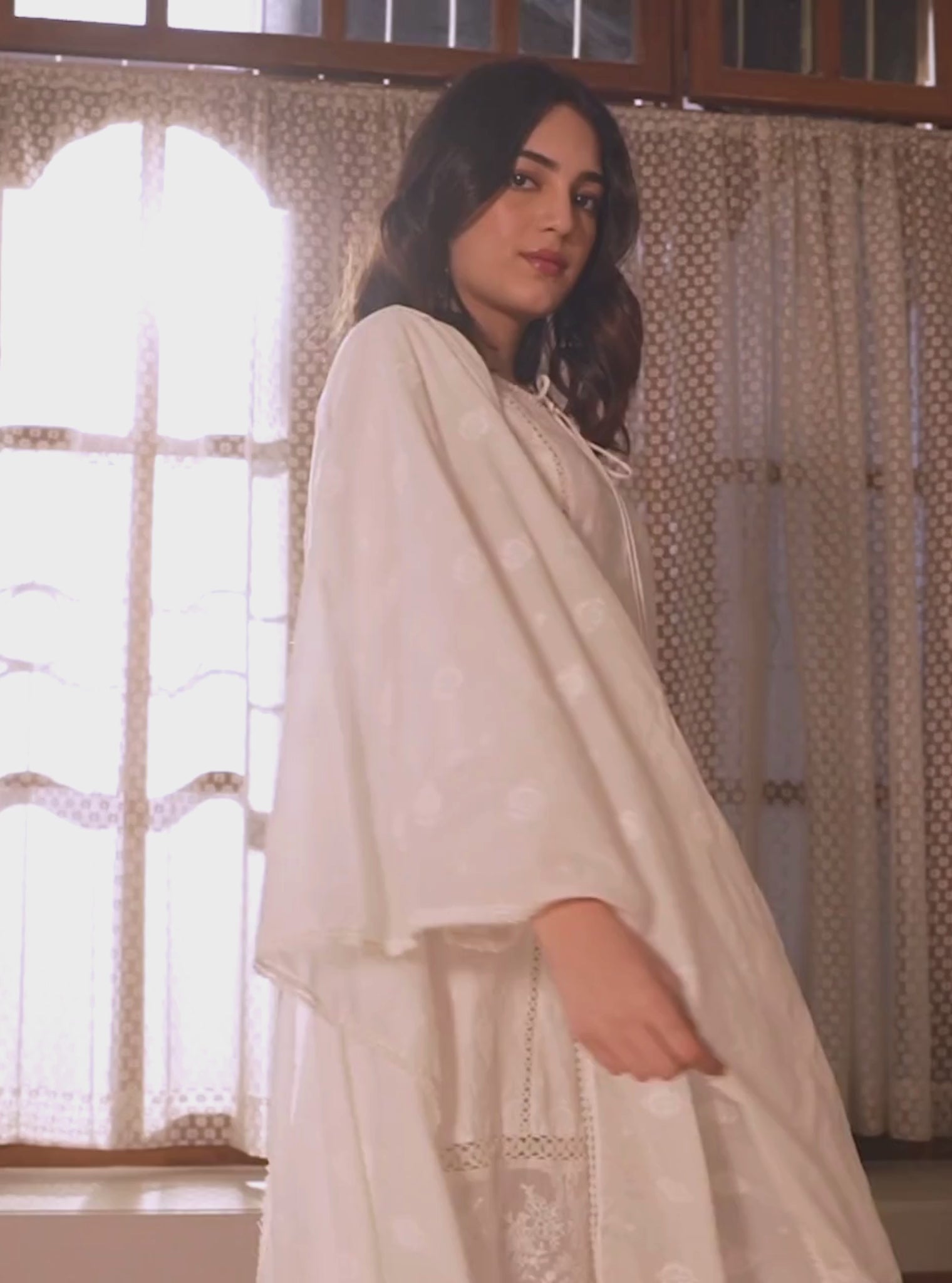 Mulmul Cotton Dinaz White Kurta With Mulmul Cotton Dinaz White Pant
