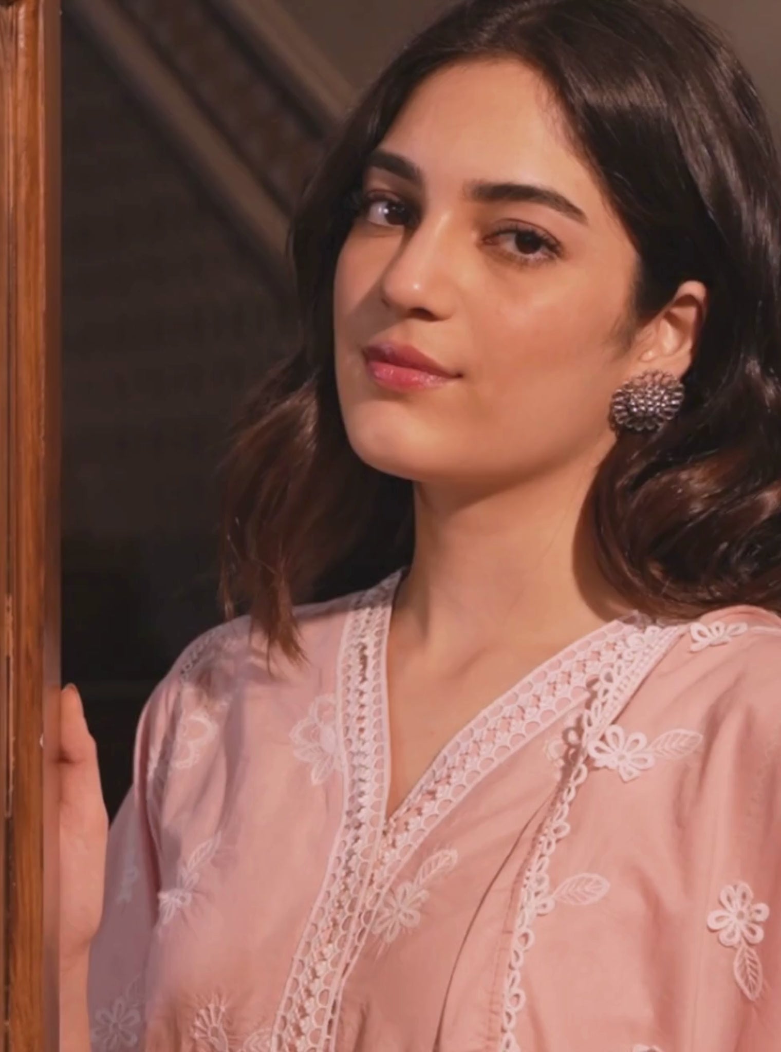 Crafted with elegance, this elegant pink ensemble exudes sophistication with its intricate white-thread floral embroidery, meticulously woven throughout. Elevating the simplicity of the kurta set are its graceful balloon sleeves and scalloped hemline. Adding an extra layer of intricacy, a panel of jaali lace features at the bottom of the kurta, imparting a touch of ethereal beauty. The straight bottoms feature an organza panel embellished with intricate white lace, completing the ensemble with finesse.