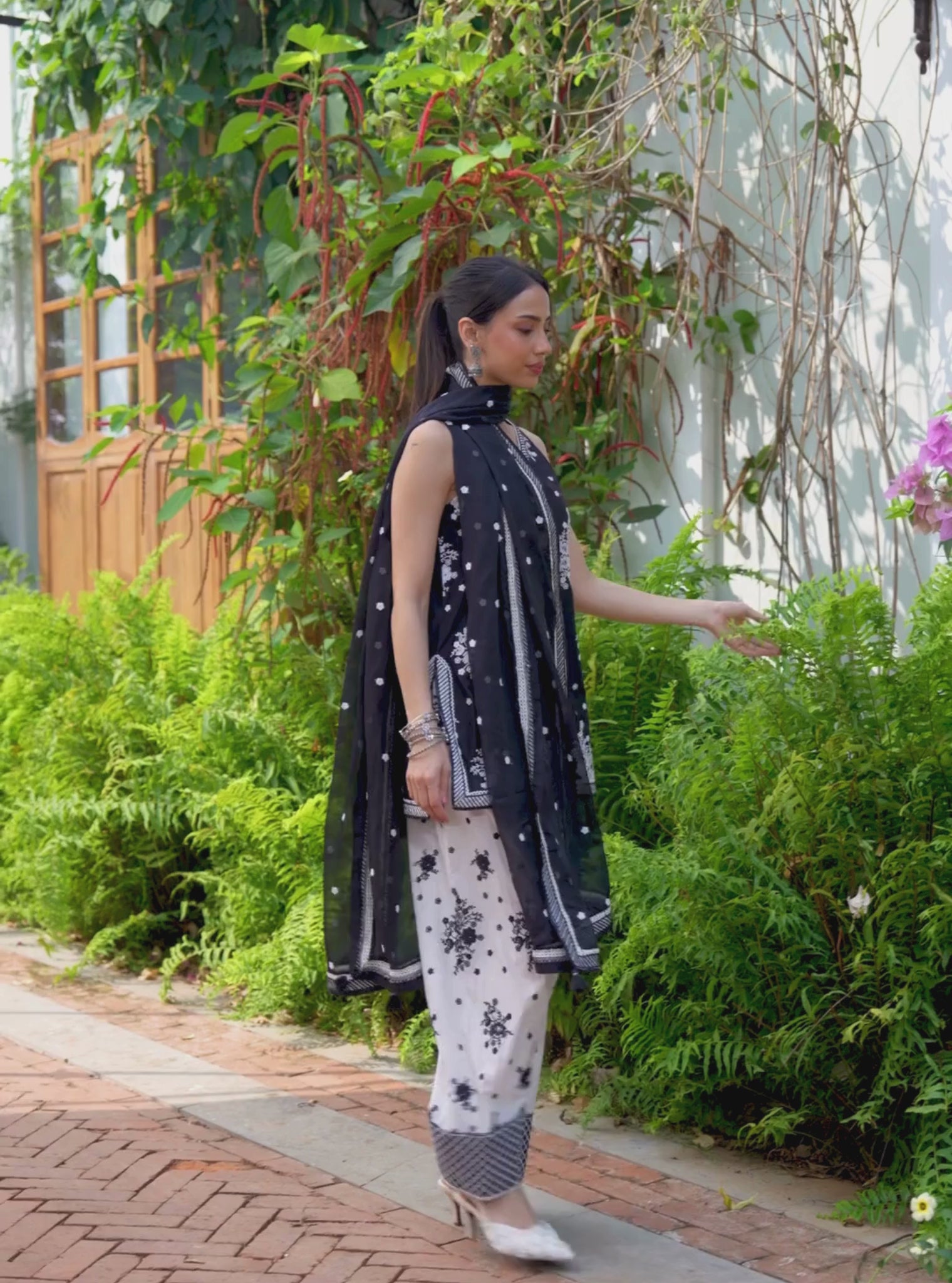 Crafted in soft Supima cotton, the Liva kurta set blends timeless monochrome with delicate printed detailing. The straight kurta features subtle motifs that stand out beautifully against the black base. It is paired with comfortable off-white cotton salwar pants that add contrast while maintaining an elegant balance. The ensemble is finished with a lightweight organza dupatta featuring coordinated Liva prints, lending the look a soft and flowing finish. An easy yet striking set suited for both daytime gatherings and evening occasions.
