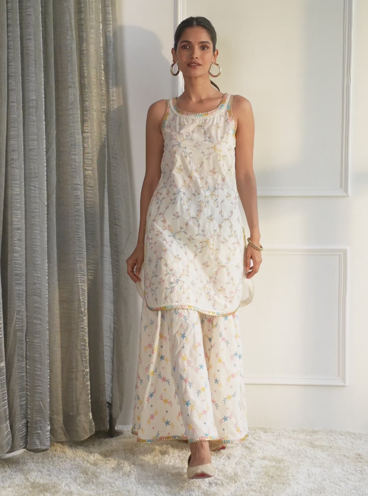 Mulmul Cotton Makayla Off White Kurta With Makayla Off White Sharara