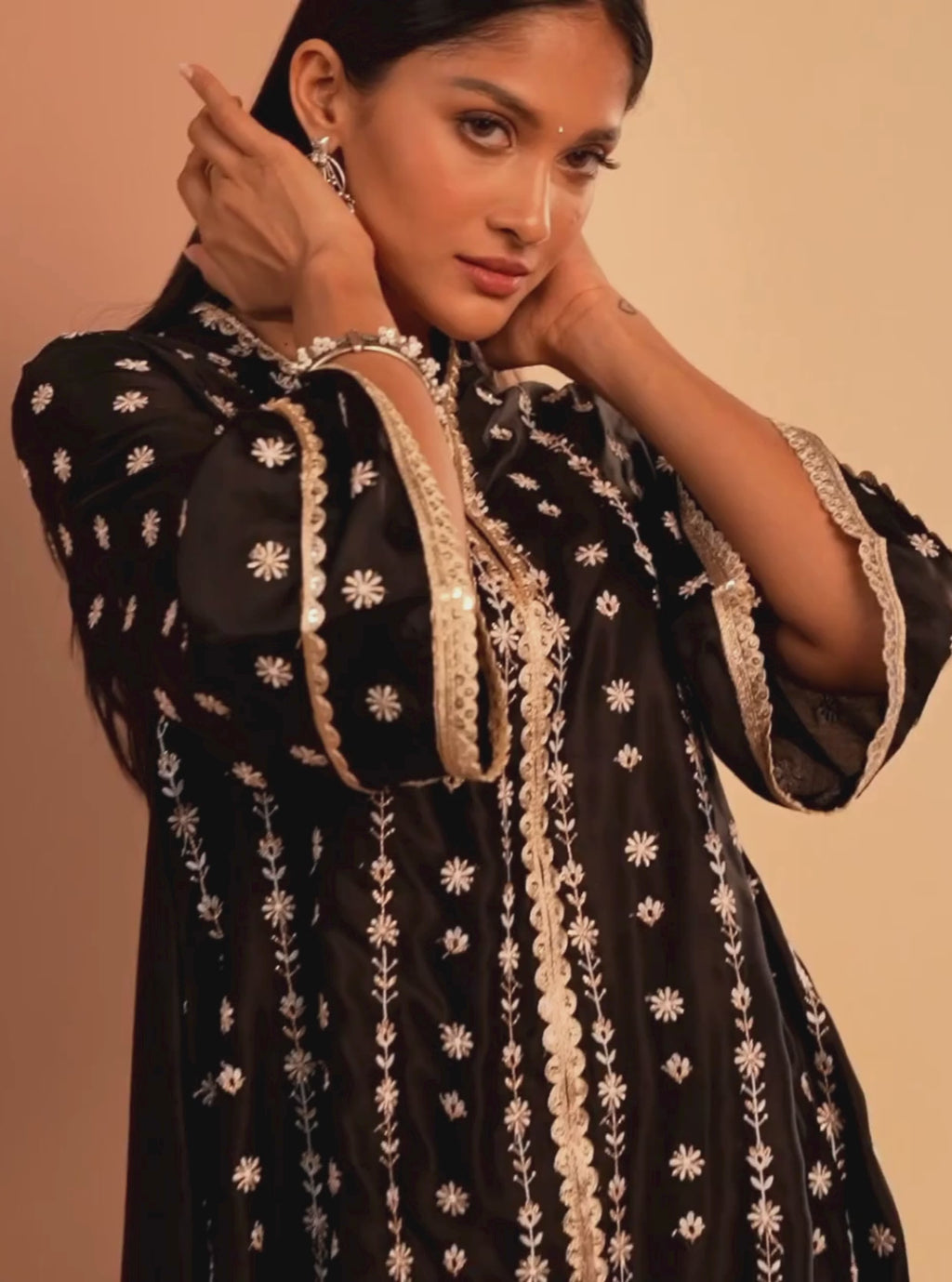 Mulmul Cupro Amara Black Kurta With Mulmul Cupro Amara Black Pant