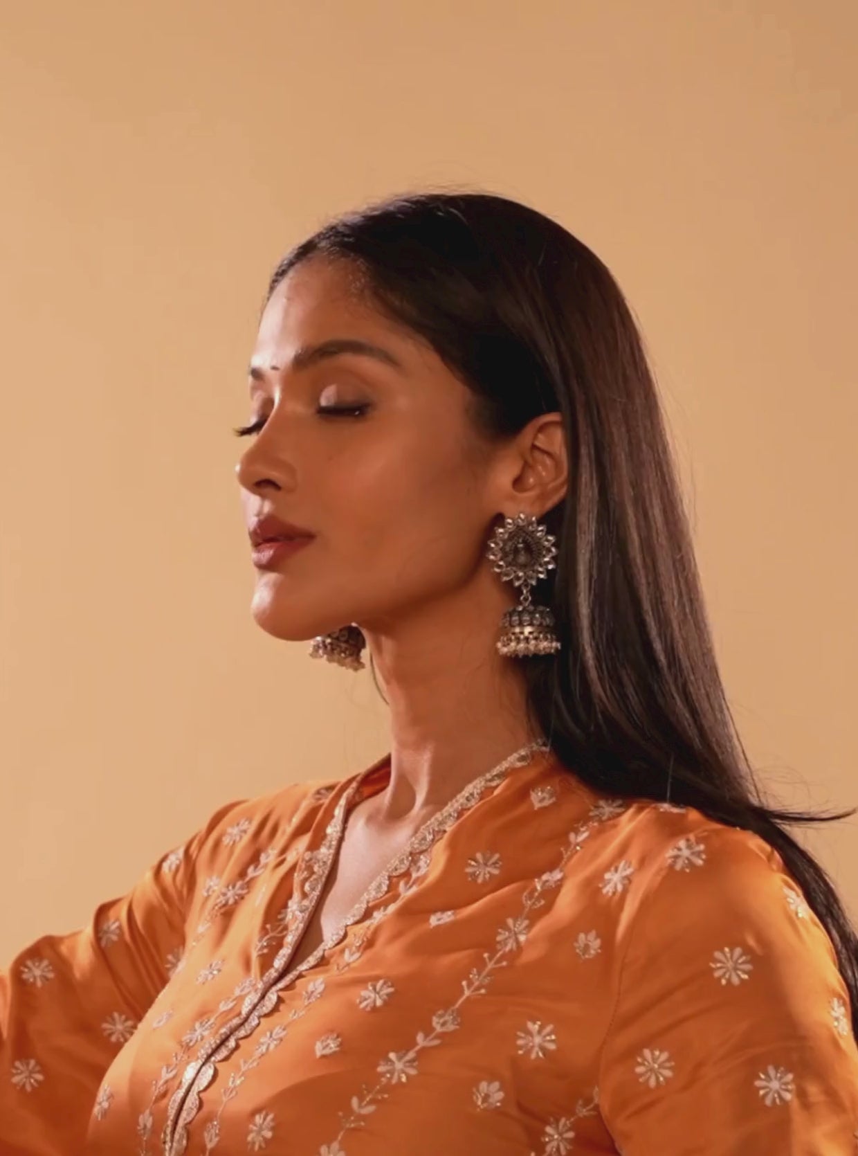 Mulmul Cupro Amara Orange Kurta With Mulmul Cupro Amara Orange Pant
