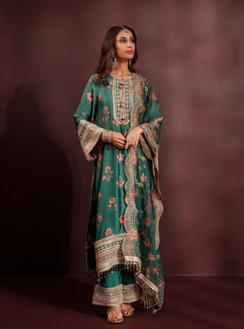 Refined, Bold, And Eternally Classic — The Ovia Kurta Set In Black Print Brings Together The Richness Of Cupro Satin And The Lightness Of Organza. The Straight Silhouette Is Adorned With Vibrant Floral Patterns And Intricate Embroidered Borders That Add A Festive Charm. Styled With Matching Pants And An Organza Printed Dupatta Featuring Scalloped Lace Edges, It’S The Quintessential Festive Look For Celebrations That Stretch From Day To Night.