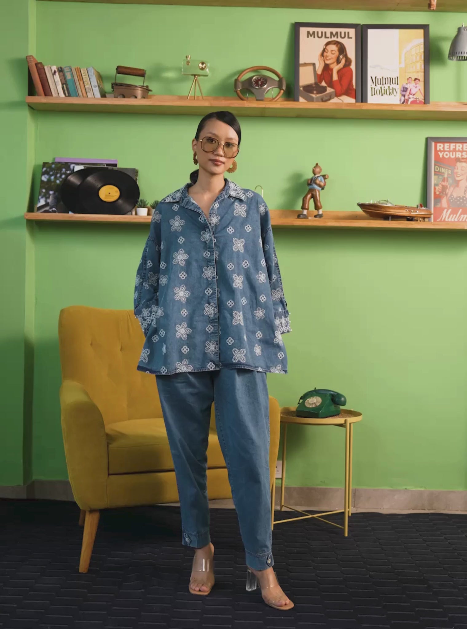 A modern take on the co-ord-easy denim, softened with tonal prints and cut in a drapey silhouette. The Veha Shirt features a roomy fit and curved hem, paired with relaxed straight pants for maximum comfort. It’s the kind of set that looks polished with zero effort-ideal for work days, travel plans, and every laid-back moment in between.