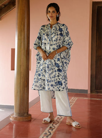 The Kurta'S Relaxed, Boxy Silhouette Offers Maximum Comfort, While The Three-Quarter Sleeves And Open-Neck Detailing Add A Hint Of Modernity. Its Lightweight Fabric Ensures Breathability, Making It Ideal For Warmer Weather. The Straight-Leg Pants Perfectly Complement The Kurta. .