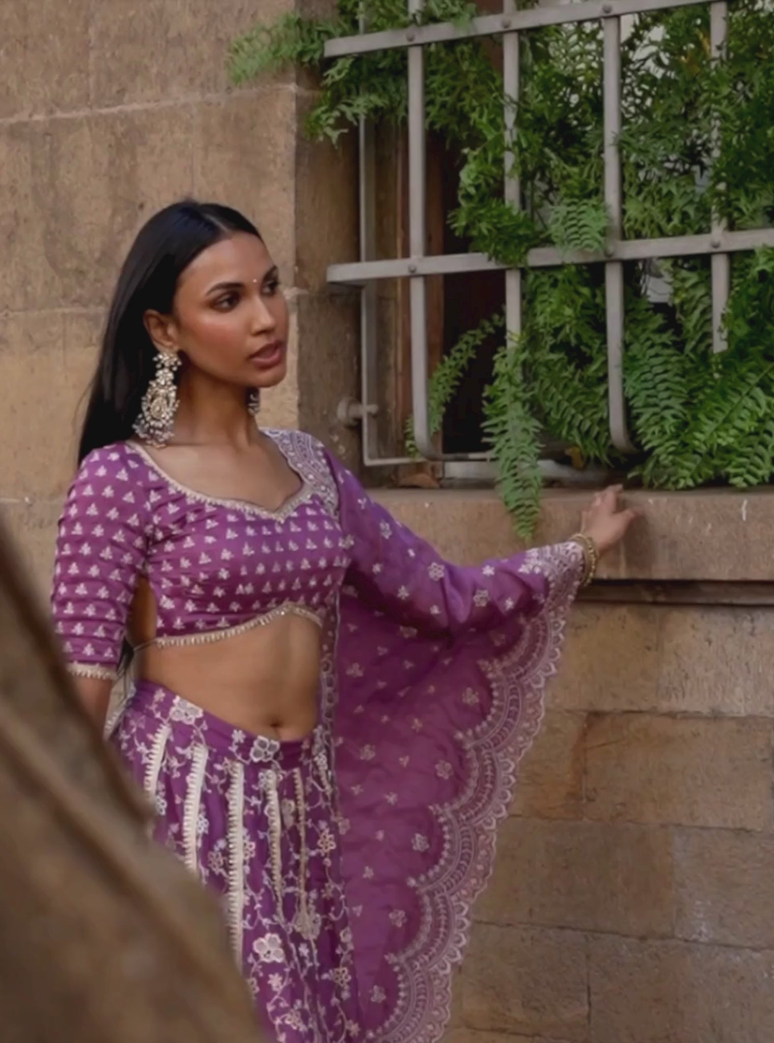 Indulge In The Essence Of Summertime Elegance With This Youthful Yet Refined Lehenga In A Refreshing Shade Of Purple, Tailored To Perfection For The Season'S Festivities. Intricately Adorned With Delicate White Thread And Zari Floral Embroidery Throughout The Skirt, It Exudes A Harmonious Contrast That Captures The Spirit Of Summer. The Hemline Is Gracefully Accented With Golden Lace Work, Infusing A Festive Allure Into????The Ensemble. Complete Your Ensemble With A Coordinating Dupatta Featuring Scalloped Edges, Elevating The Look With A Final Touch Of Sophistication.