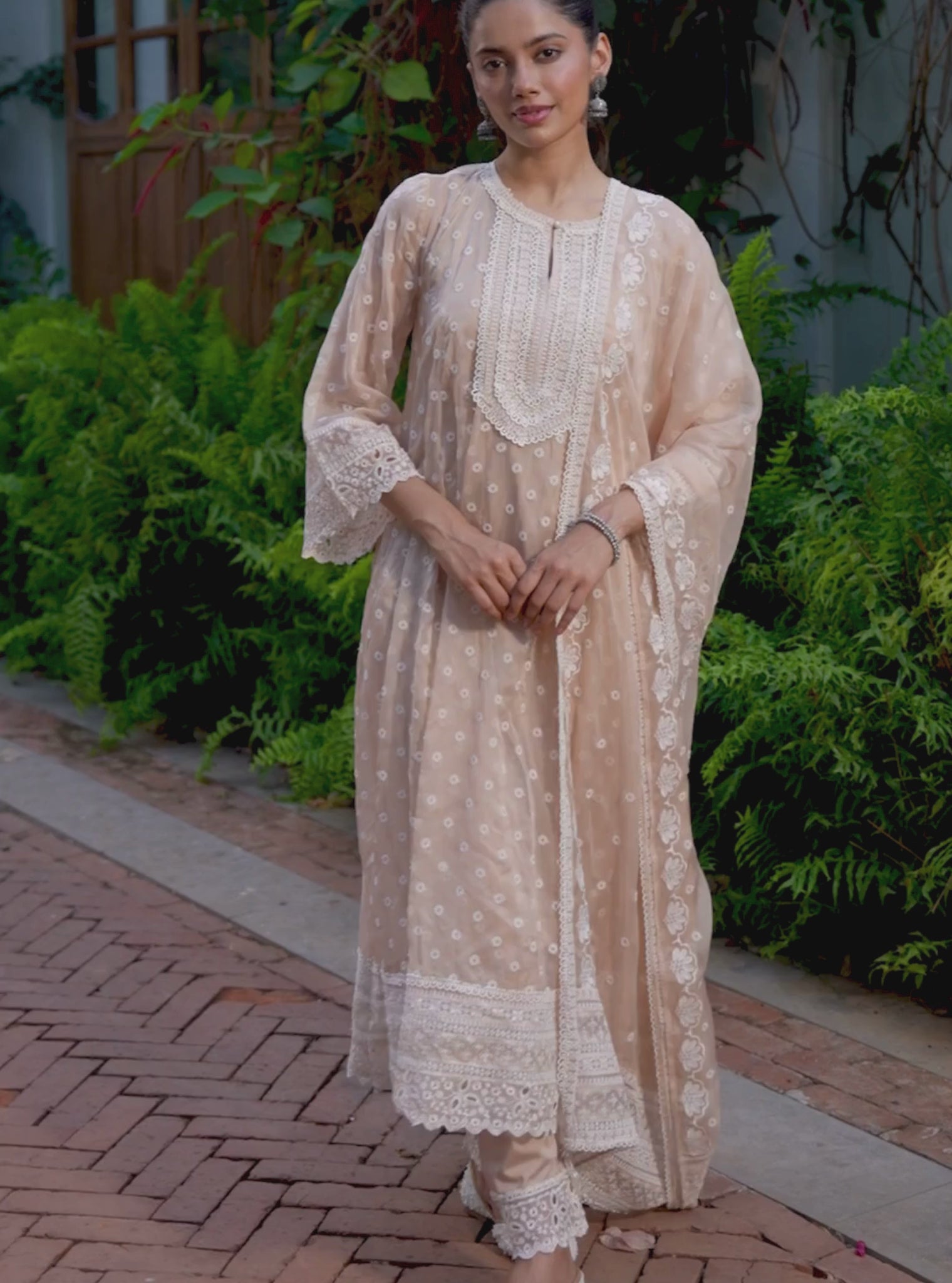 Hena Organza Biege Anarkali Set