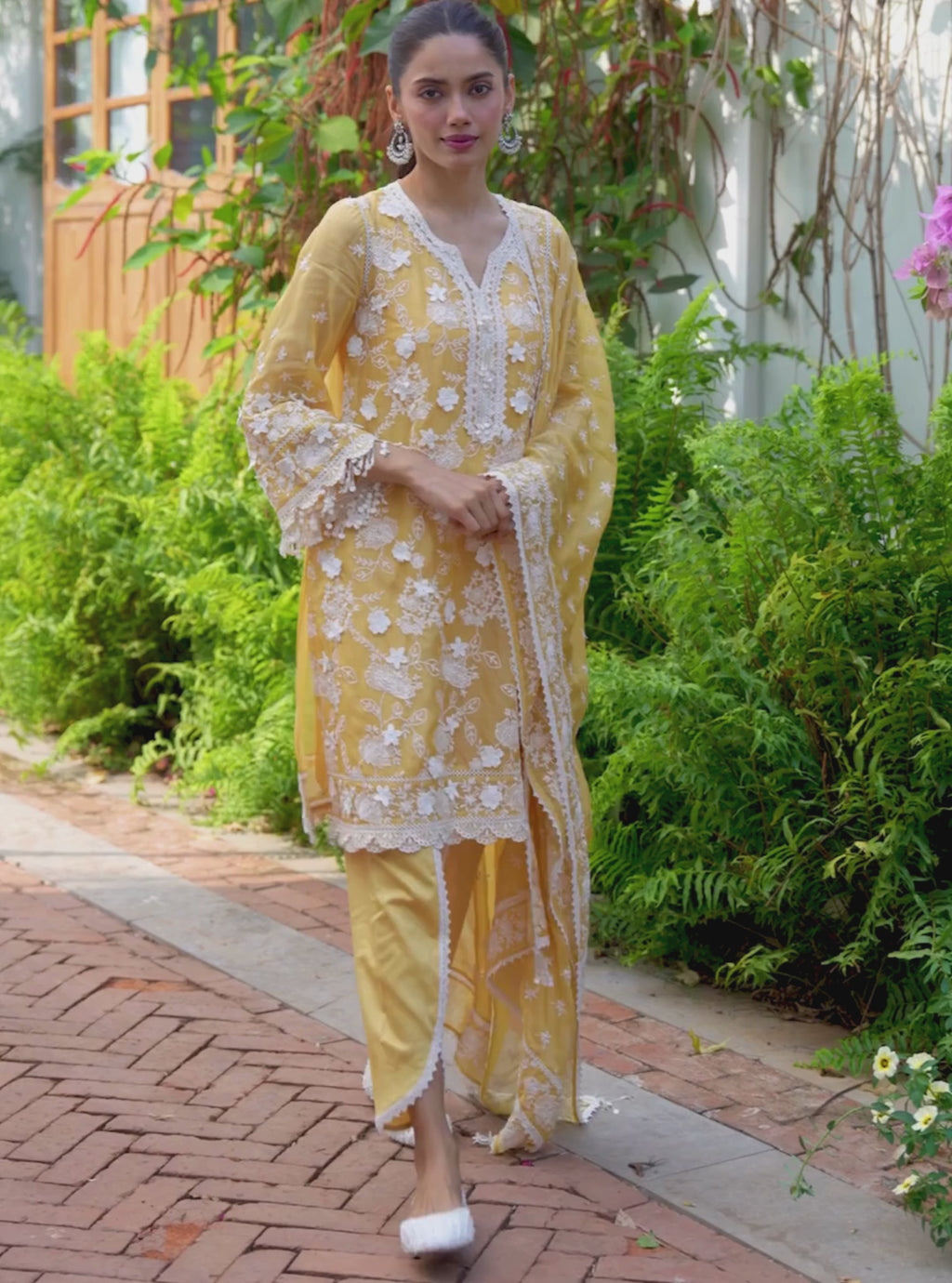 Crafted in lightweight organza, the Vino Kurta Set features a straight kurta detailed with delicate embroidery and refined borders. The kurta is paired with fluid dhoti-style pants in smooth KLF satin, offering comfort and ease of movement. A coordinated organza dupatta completes the ensemble with a soft, airy drape.