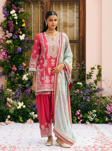 Crafted in premium Pima Satin, this kurta set is equal parts festive and functional. The kurta is detailed with intricate embroidery that adds richness while maintaining a clean, modern feel. Paired with matching Pima Satin pants that offer structure without stiffness. Completed with a contrasting dupatta to bring depth and visual interest.