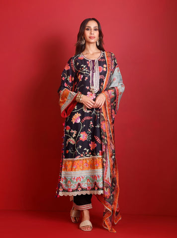 Nisi Pima Satin Printed Mustard Kurta Set
